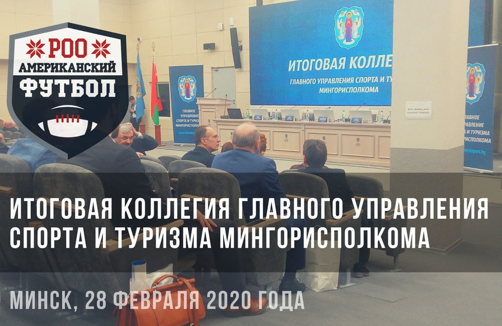 Представители республиканского общественного объединения «Американский футбол» приняли участие в итоговой коллегии главного управления спорта и туризма Мингорисполкома, которая состоялась 28 февраля 2020 года.